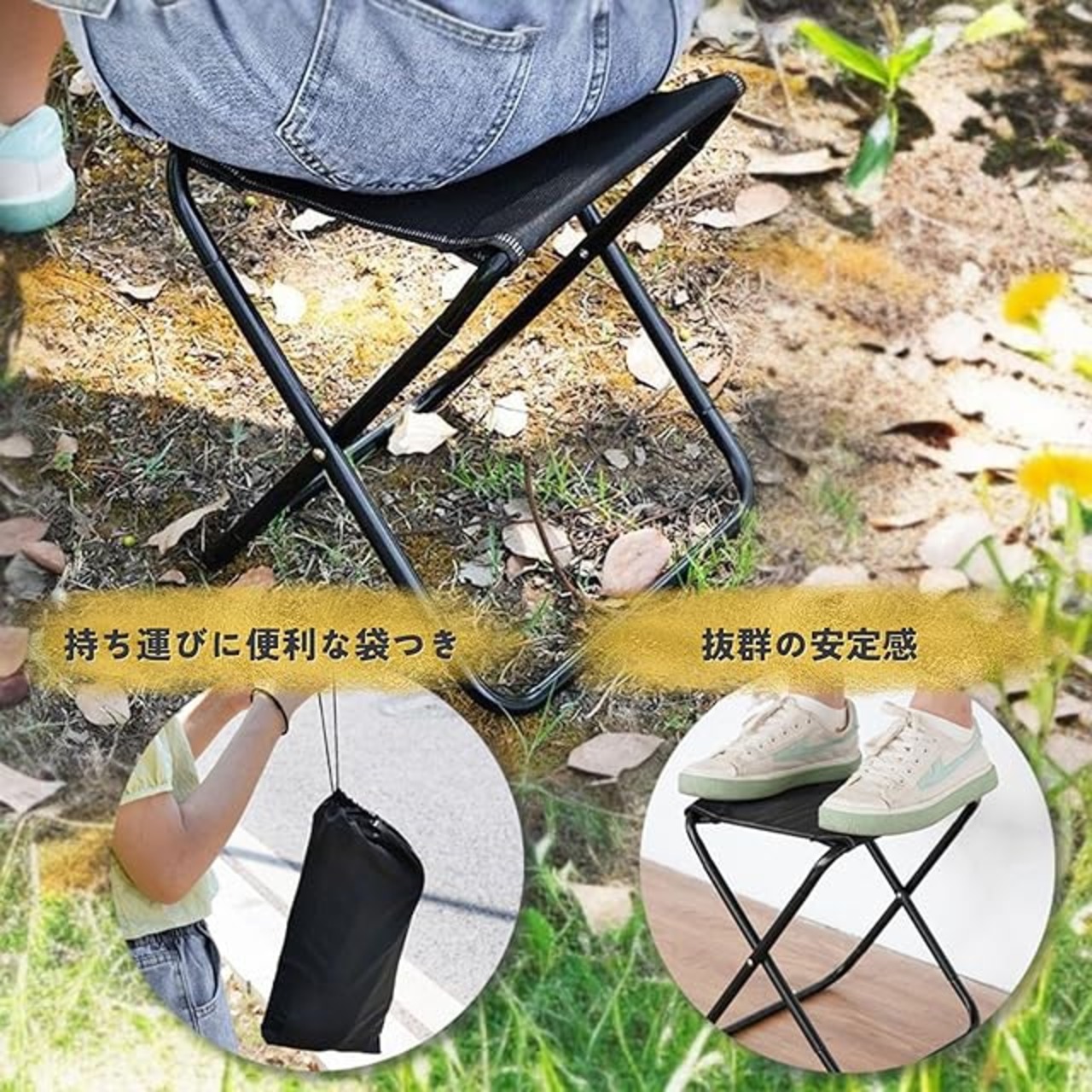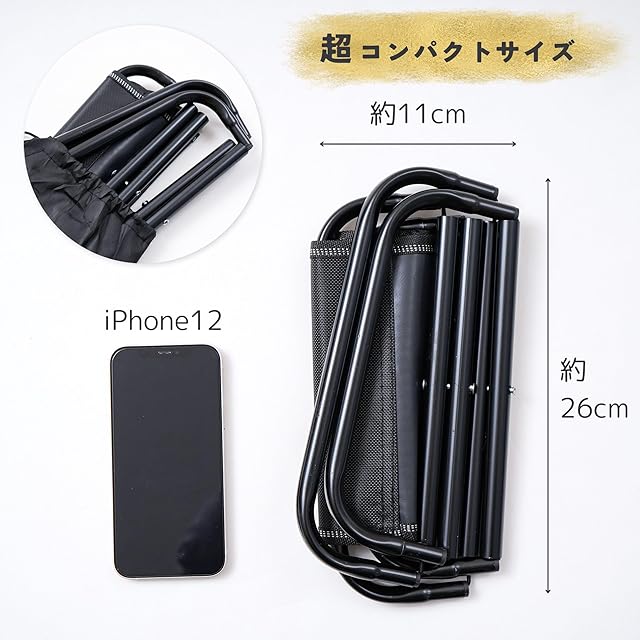 コンパクトかつ軽量なアウトドアチェアです。持ち運び用の収納ケースもセットです。イベント毎に並ぶときにも便利。