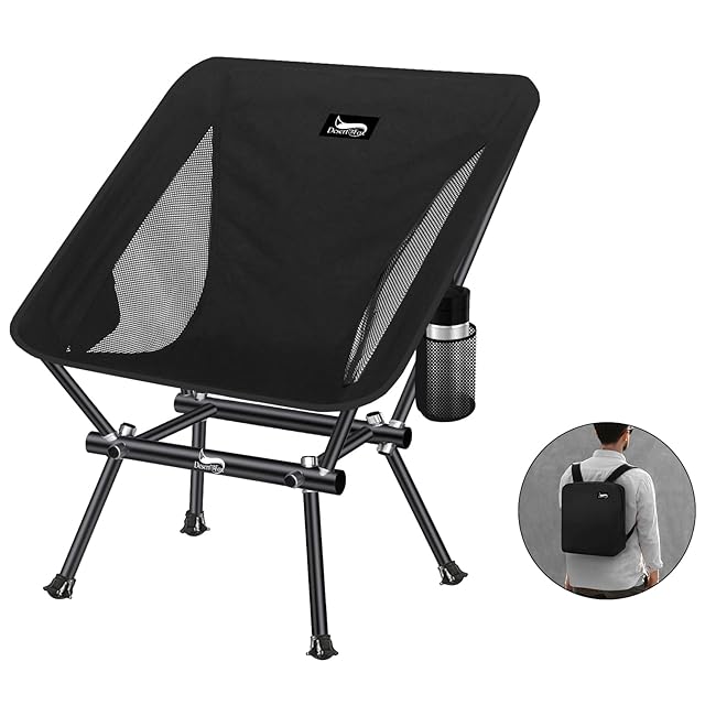 DesertFox アウトドア チェア 折りたたみ キャンプ 椅子 軽量 【 独自開発のカップホルダー】 ポケット付き 耐荷重150kg コンパクト イス 椅子 収納袋付属 お釣り 登山 携帯便利 ZZSTA WB (ブラック)