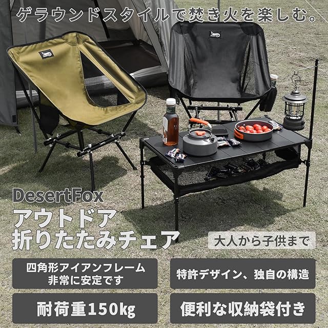 ✅【安定】焚き火に近づき暖まることや、足を伸ばすことができ、より多くのシーンで大活躍!【四角形フレームでより安定】伝統的なキャンプ椅子と違い、座面の下のフレームは四角形となっていて、全体的に安定性がアップグレード!