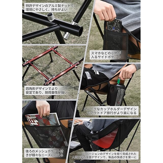 ✅【優れる耐久性と通気性】 アウトドア椅子は800Dポリエステルを採用した座面とメッシュの設計で、あつい季節も蒸し暑くなく、抜群の通気性と快適な座り心地を確保できます。座面の裏も防水加工し、雨でもタオルでちょっと拭くだけ座れます。さらに、座面を深くするし、ハンモックのように体にフィットし、ゆったりと包み込まれる座り心地を実現したレジャーチェアです。