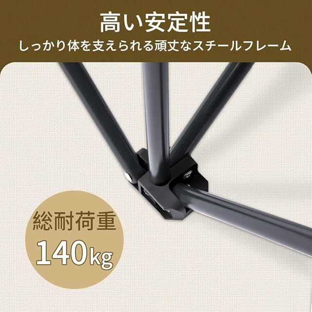 【耐荷重】フレームはスチールで出来ていて、総耐荷重は約140kg、子供も大人も快適に座ることができます。座面の素材は引き裂け難いポリエステルオックス生地を使っているので、耐久性と撥水性が高く、清掃も簡単にできます。【注意】本商品は2人用です。2人様以上でのご利用はご遠慮ください。※写真の光の加減や角度により実物の色が多少異なる場合があります。