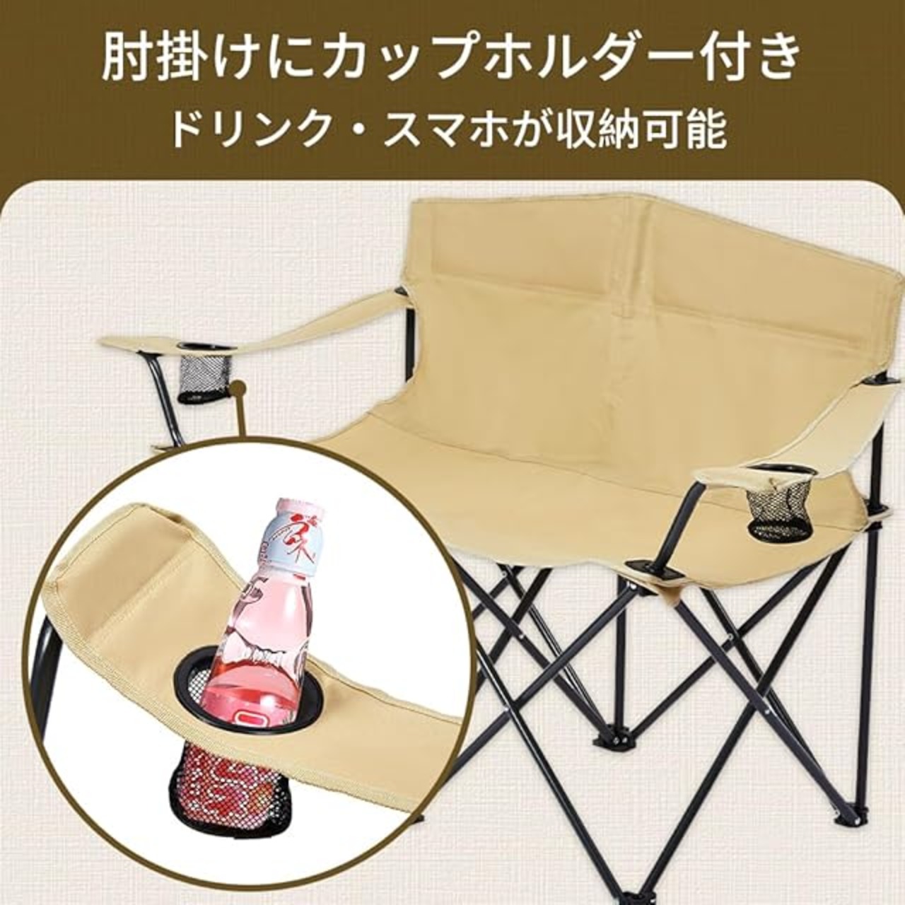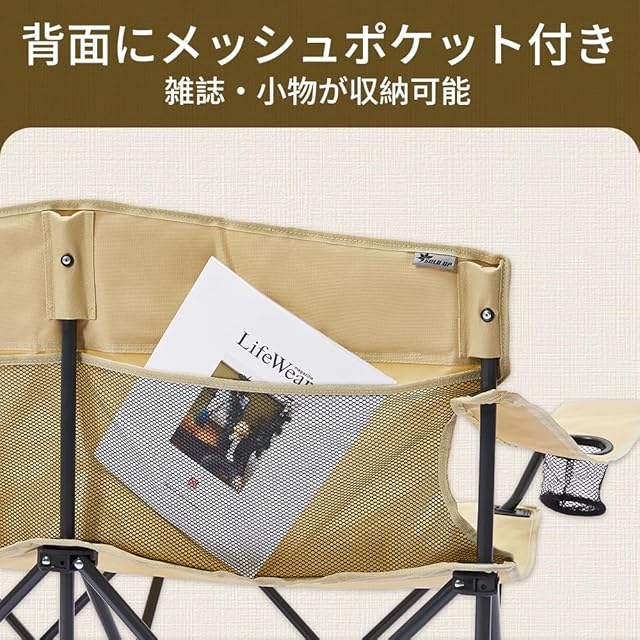 【基本仕様】アーム幅127(座面幅96cm)x奥行52x座面高さ42cm(背もたれ高さ79cm) お宅用の椅子の様に、座り心地が良く、長時間座っても疲れません。キャンプ、お釣り、お花見、花火大会、BBQ、ピクニック、運動会など、様々なところで利用されます。
