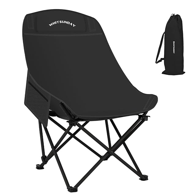 Whitsunday アウトドアチェア キャンプ椅子 グランドチェア キャンプチェア 軽量 折りたたみ コンパクト ハイキング お釣り 登山 ロータイプ - 黒