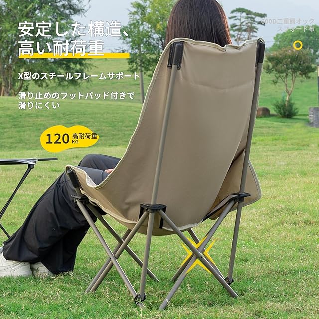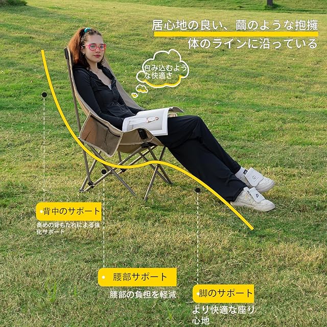【頑丈なムーンチェア】ダブルレイヤーのオックスフォード生地と強化されたアルミニウム合金フレームで構成され、この頑丈なポータブルキャンプチェアは、最大330ポンドの荷重を支えることができます。