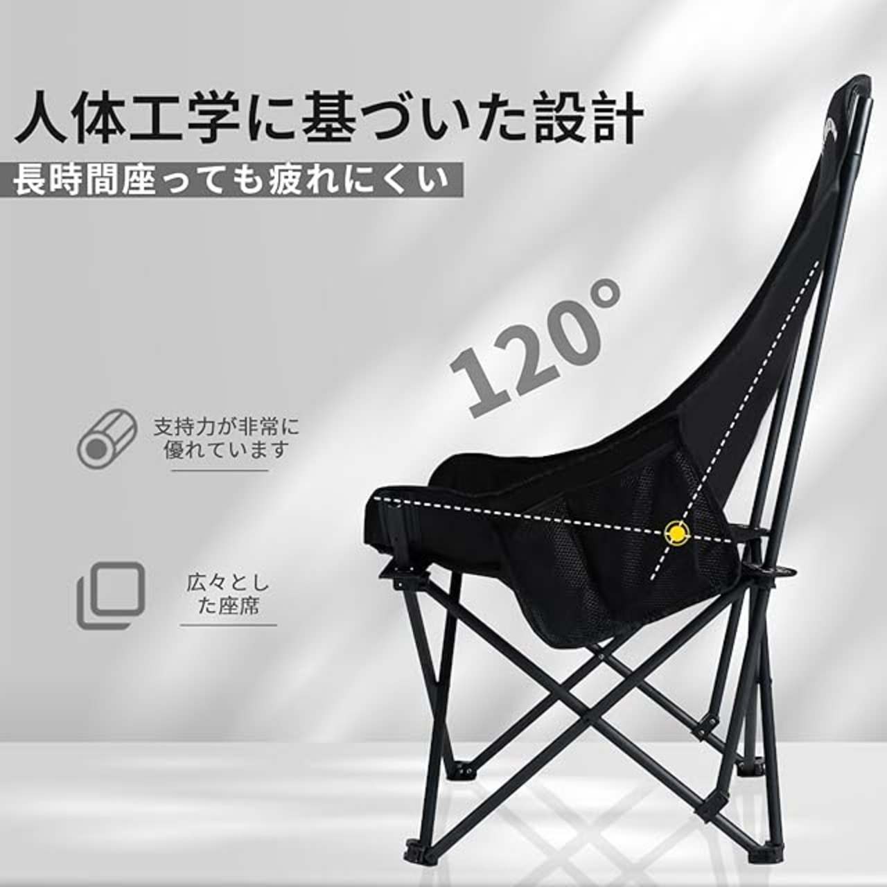 【ハイバックキャンプチェア】ハイバックキャンプチェア:ホワイトサンデームーンチェアは、ハイバックデザインを採用し、大人や体格の大きな方に最適です。快適な座り心地を提供するために、2 x 2 x 2インチの寸法で人間工学に基づいて設計されています。