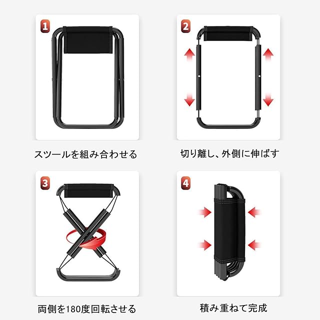 最大荷重100kg - 折り畳みスツールはアルミ合金ブラケットで作られており、最大荷重は100kgで、大人の体重を支えるのに十分です。 軽量で、アウトドア活動に適しています。