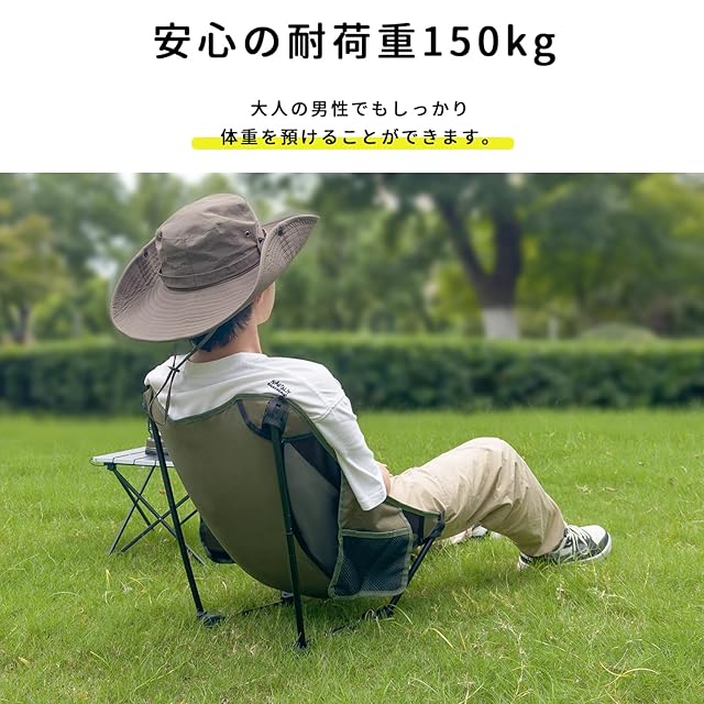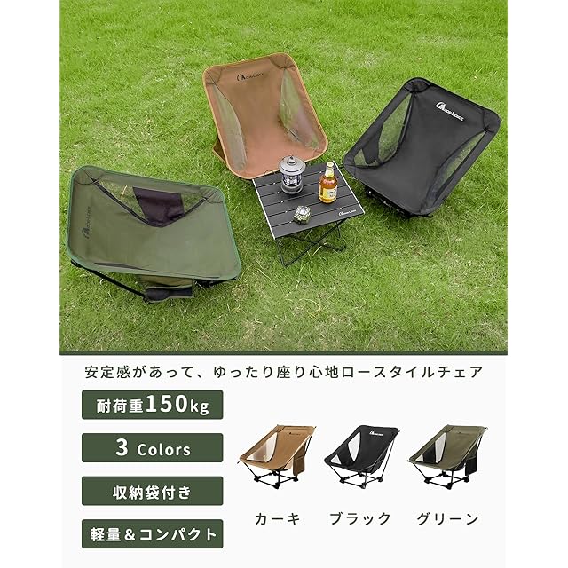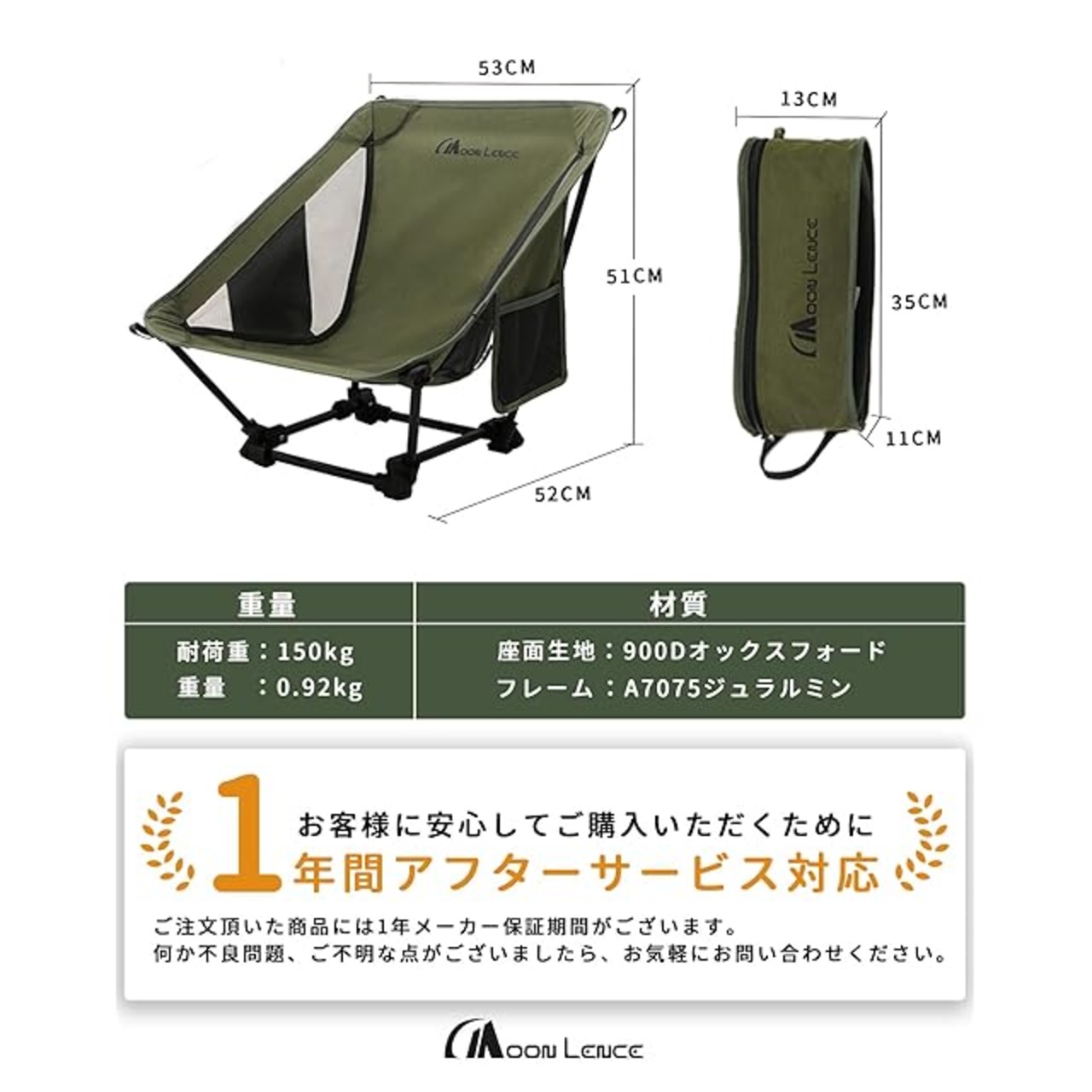 MOON LENCE アウトドア チェア ローチェア キャンプ 椅子 グランドチェア 軽量 折りたたみ コンパクト ハイキング お釣り 焚き火 登山 耐荷重150kg (カーキ1個入) | ascend