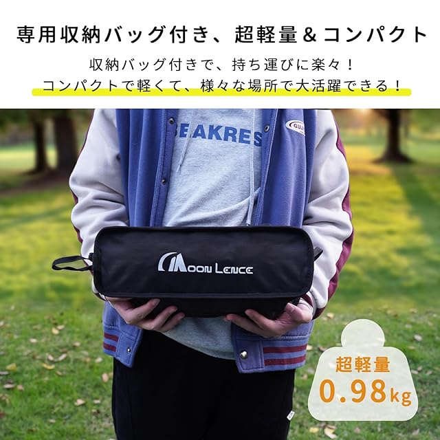 【コンパクトに便利】本体の重さは980gだけ、椅子状態でも気軽に持ち上げることができます。 また専用収納袋がついているので、収納スペースを食わず持ち運びに便利で楽です。 荷物の多いファミリーキャンプ様々なアウトドアシーンでも大活躍します。