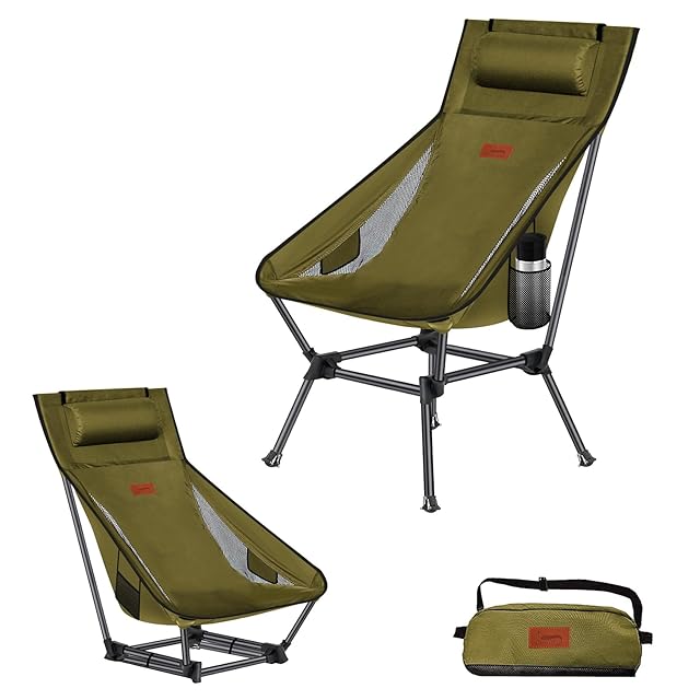 DesertFox アウトドアチェア 2WAY キャンプ椅子 ローチェア 軽量 枕付き ハイバック 【独自開発のカップホルダー】 耐荷重150kg コンパクト イス ロータイプ 収納袋付属 携帯便利 STG0098 (グリーン) | ascend