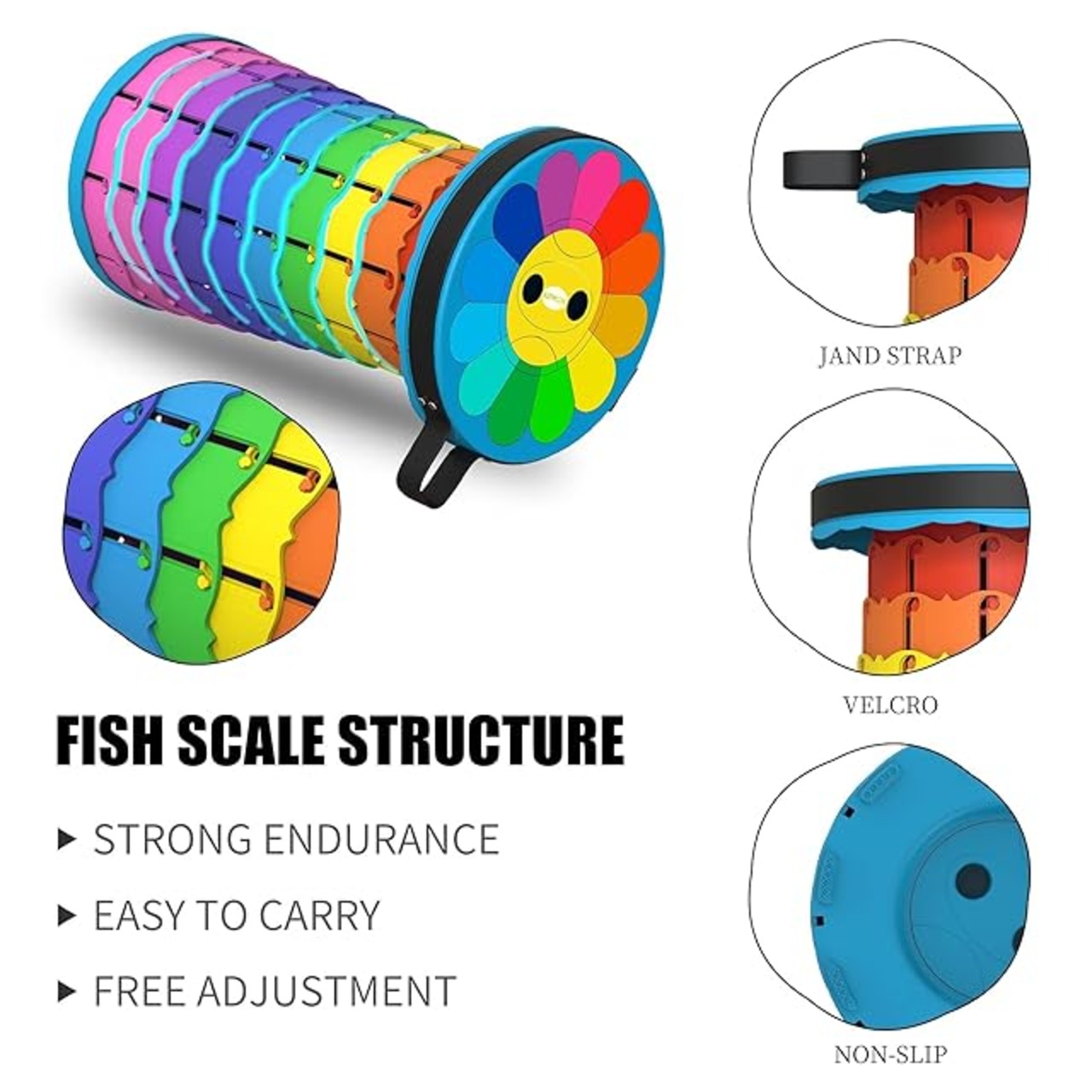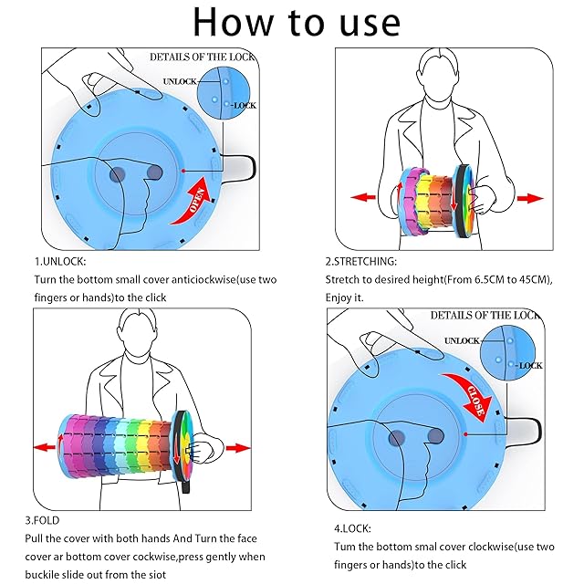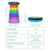【楽々収納&簡単に折りたためる】 重さは1Kgぐらい、収納サイズは6.5cm*25cm,取っ手、ストラップ付き、楽に持ち運びできます。もちろん、リュックに入れても平気に持ち運びできます。 指をスツール両辺の小孔に挿して、ひねりながら伸ばして、好きな高度に引いて回転して固定します。逆方法に少しひねりを入れながらスツールの両端を押すだけで一瞬で収納可能です。