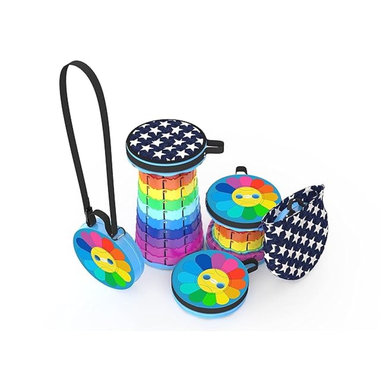 【ギフト付きチェア】伸縮式スツール、スタースイベルクッション&スターキャリーバッグとカラビナ付き。