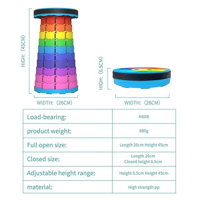 【安全で頑丈】高強度で耐久性の高い環境に優しいプラスチックPP製。シリンダー形状構造、タイトな接続クラスプ、滑り止めのベースにより、この折りたたみ可能なスツールは安定して安全で快適な座り心地を提供します。 最大耐荷重は440ポンド(200kg)です。注意:シートの中央に座ってください。 シートの端に座らないでください。 スツールを傾けないでください。スイープダウンしないでください。