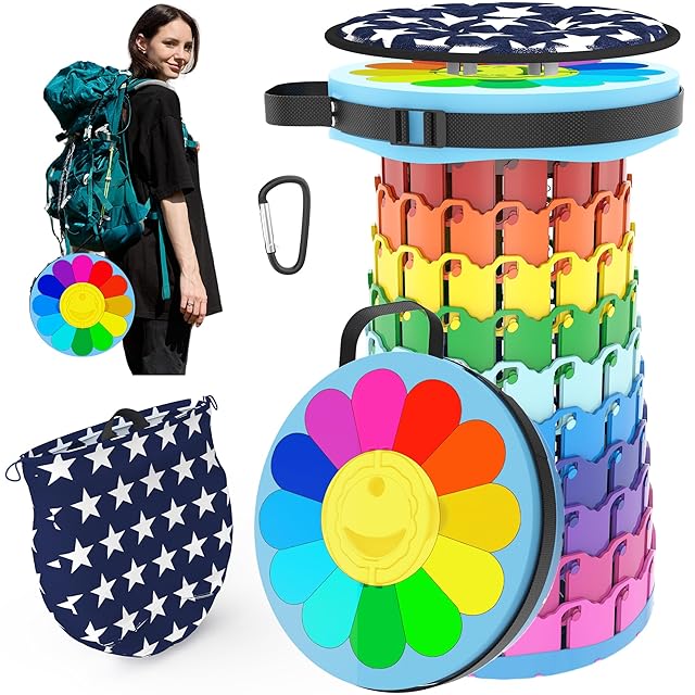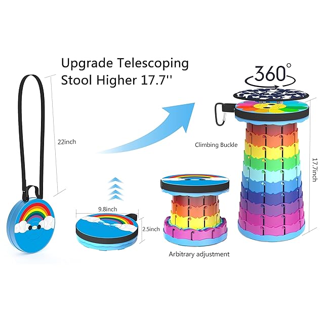 【高さ調節も自由自在折り畳みスツール 】 セット内容:折りたたみスツール本体x1、星柄収納バッグx1、360度回転クッション、カラビナx1 最新第5世代折りたたみ椅子、より軽量化、より頑丈、より高い耐久性!