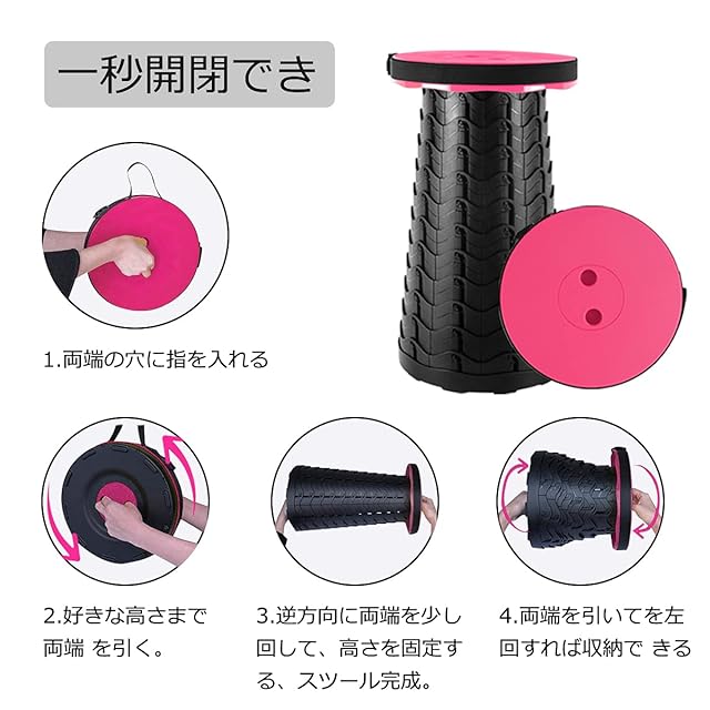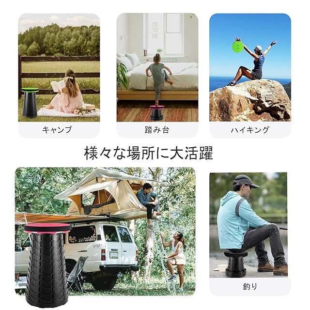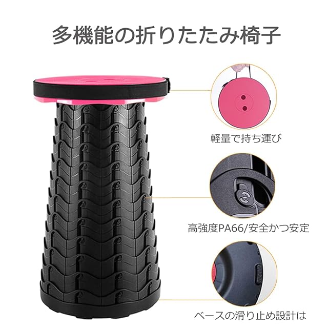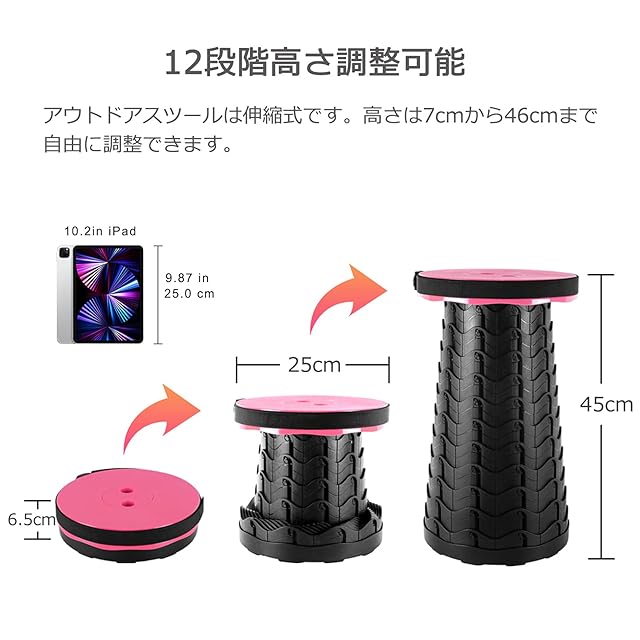 折りたたみ椅子 アウトドア チェア 伸縮式 キャンプ スツール 軽量 持ち運び【耐荷重180kg】一秒開閉でき 高さ調整可能 6.5~45cm 収納バッグ付き【意匠登録済】登山 釣り 行列待ち 運動会 室内 屋外 兼用