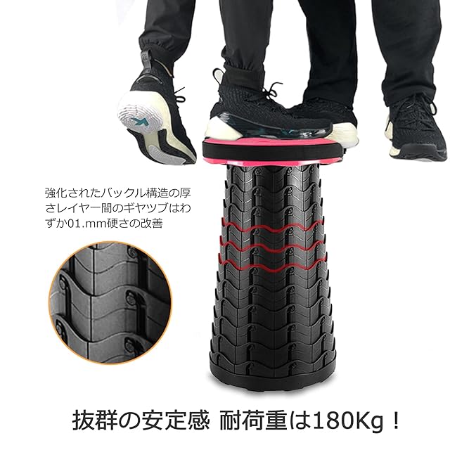 【最新の改良版、耐荷重180KG】最新型で、本体重量は僅か1.15KGなのに、耐荷重はなんと180KGまで対応、改善後にリクライニング可能(旧式は傾斜してはいけない)。PA6+PPプラスチック素材採用、丈夫で安定感も抜群
