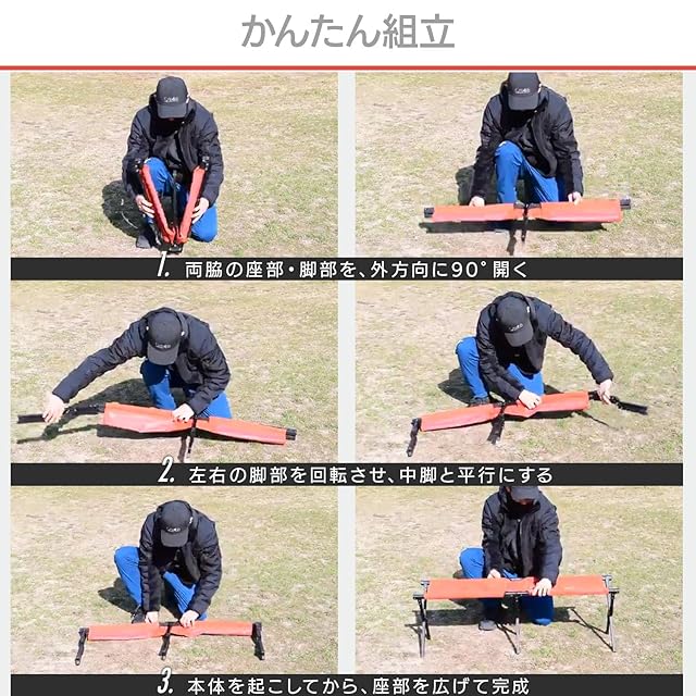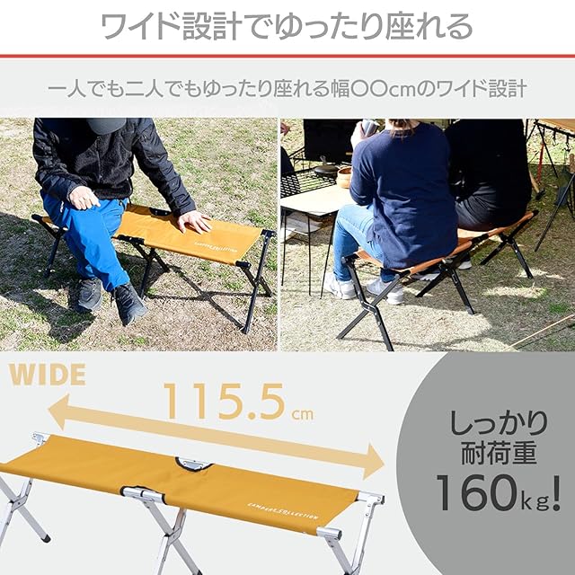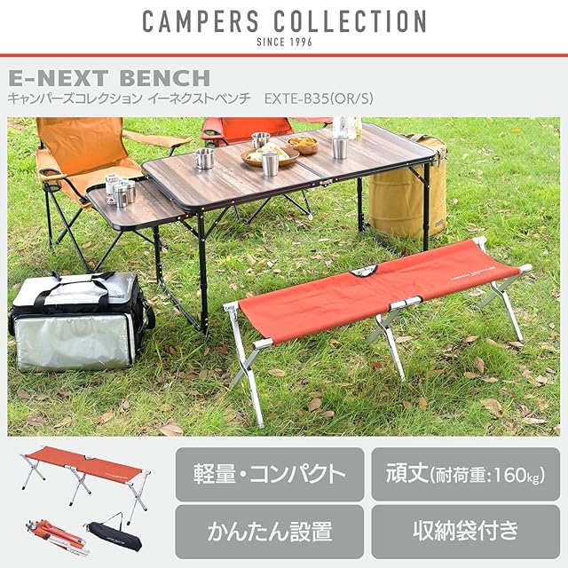 [キャンパーズコレクション 山善] イーネクストベンチ 耐荷重160kg 折りたたみ 軽量 コンパクト収納 収納袋付き キャンプ アウトドアチェア オレンジ×シルバー EXTE-B35(OR/S)