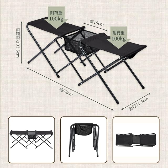 家庭に適している:最大荷重100 kgの各座席は、2人の大人がアウトドアキャンプに行ったり、子供や家族が家でテレビを見たりするのに適しています。