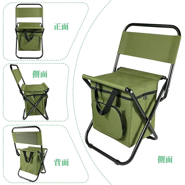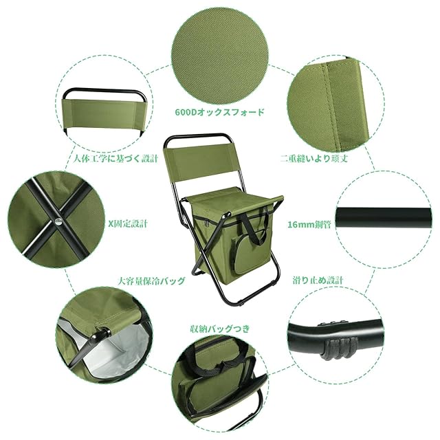 KUWAN アウトドアチェア キャンプ 折り畳み椅子 チェア コンパクト ハイキング お釣り 登山 軽量 コンパクト キャンプ アウトドアチェア ハイバック ローチェア 収納 保冷バッグ 緑 | ascend