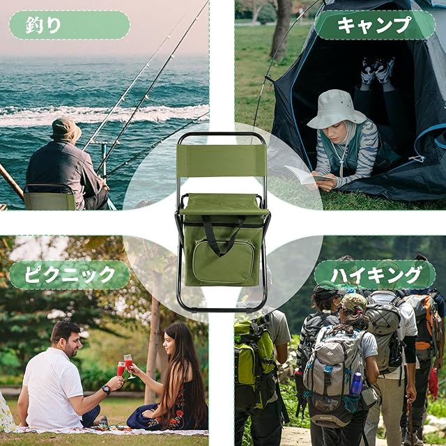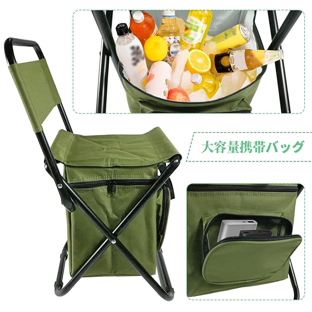 【快適な座り心地】コンパクトイスの座面は27X27センチだから座りやすいです。座面に厚手なオックスフォード生地を採用、かなり丈夫です。ゆったりと包み込まれる座り心地を実現したアウトドアイスです。<br> 【超軽量&コンパクト収納】重量:約1.2kg 耐荷重:100kg●使用時サイズ:(約)幅35cm×奥行25cm×高さ58cm●収納時サイズ:(約)46cm×35cm×10cm;コンパクトに収納出来るので、車に積んでおくのに便利です。<br> 【多機能チェア】シート下には大容量保冷バッグが付いており、通常は保冷バッグとして使用でき、食べ物のおいしさをキープしてくれます。バッグの前には大きな収納袋が付いていて、本、メガネケース、タオルなどの持ち物をスッキリ収納できます!<br>【組み立てが簡単】スリムにたためる収束式でコンパクト収納、便利に持ち運べます。<br> 【様々な場所で大活躍】アウトドアチェアとして、行列、キャンプ、お釣り、ハイキング、トレッキング、登山、 花火大会 、BBQ、運動会、お花見など、いつでもどこでも気軽に使えます。防災対策として、家・車内に常備しておけることもオススメます。<br>