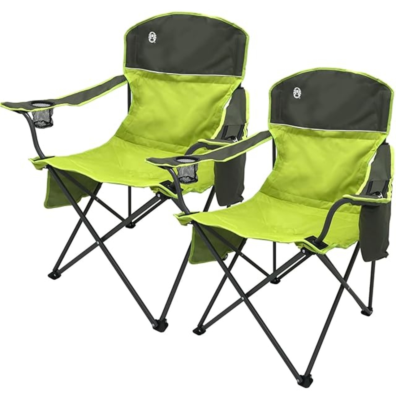 【2個セット】Coleman QUAD CHAIR コールマン チェア 丈夫な耐荷重147kg クーラーバッグポケット・サイドポケット・ドリンクホルダー・持ち運びに便利な専用収納袋付 折りたたみ椅子 アウトドアチェア