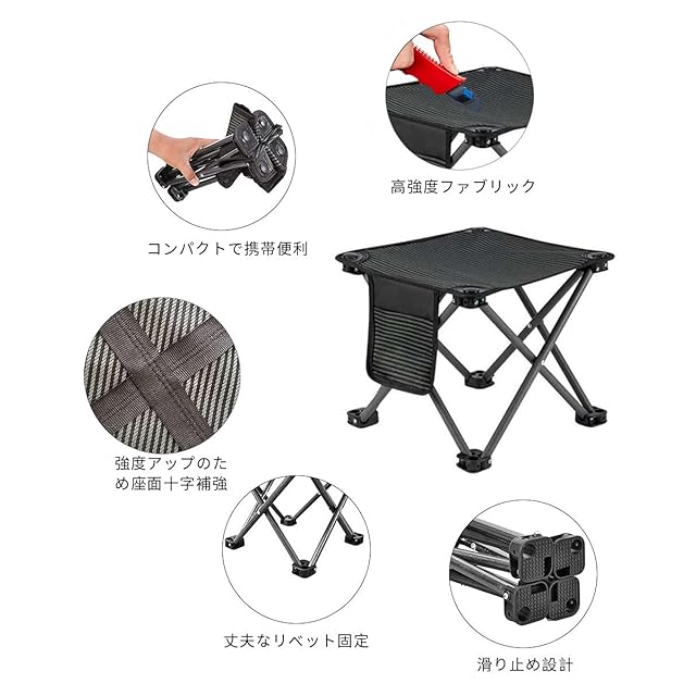 【安定性】足は四隅がしっかり連結し、強度の高いステンレス鋼製で。うまい具合にフレームがお互いを支え合って、抜群の安定感を実現してくれています。静止耐荷重は約150kgになります。