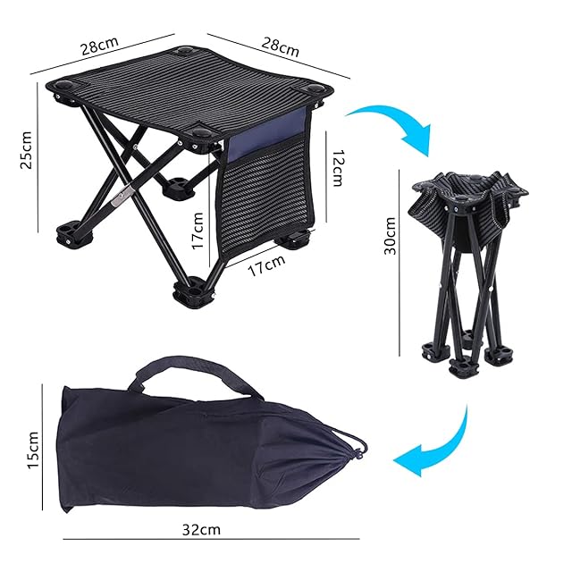 【3秒で組み立て】面倒な組み立てもないので本当に楽チンです。伸縮式の4本の脚をサッと伸ばして、パッと広げるだけ。小さなポケットがあり、小物を入れたり。携帯電話やボトルなどを収納できます。