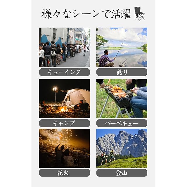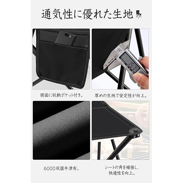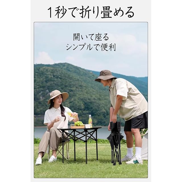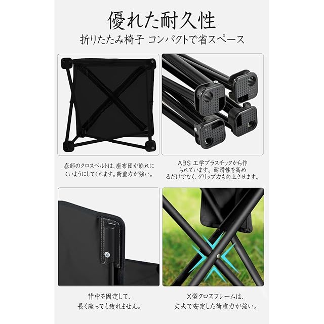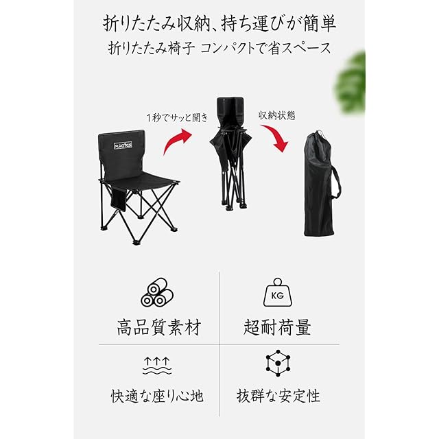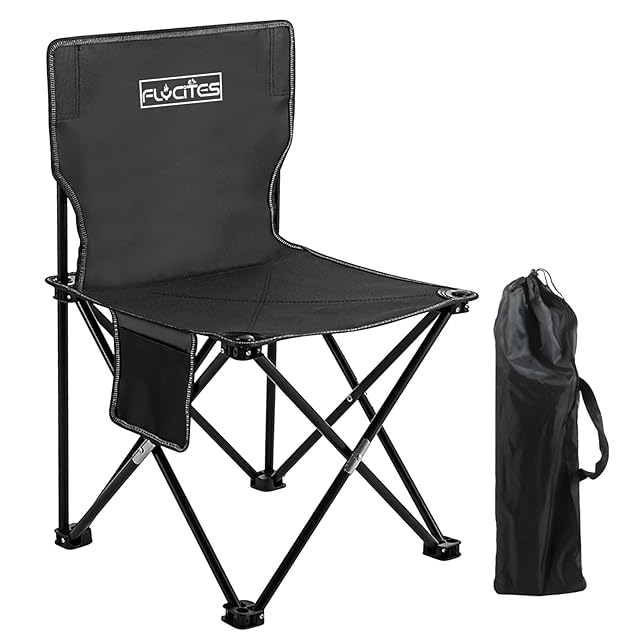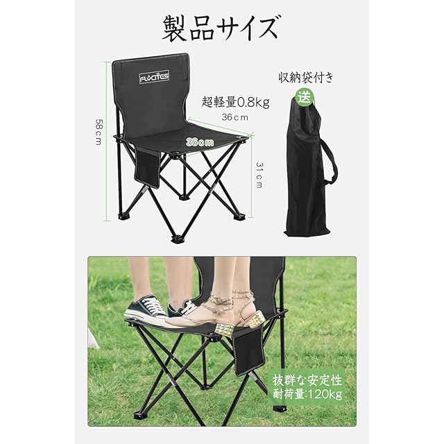 Flycites折りたたみ椅子 キャンプ アウトドア チェア 折り畳み椅子 1秒瞬間収納 持ち運び おしゃれ 超軽量 耐荷重120kg 収納バッグ付き 携帯椅子 ポケット背もたれ付 釣り お花見 登山 焚き火 バーベキュー 運動会観戦(黑)