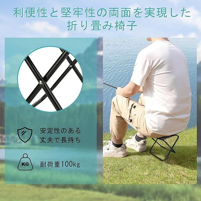 <b> [やぬき] アウトドア椅子 折りたたみ 軽量 コンパクト </b><br><br> <b>「安定性」</b><br> フレームは防錆加工済みのアルミ鉄合金パイプを利用し、パイプの直径は1.5cmなので、フレームの耐久性を向上させます。<br><br> <b>「外仕事で一服する時に使用」</b><br> キャンプ、釣り、BBQ、登山、お花見、サイクリング、ピクニック、スポーツ観戦、花火大会、行例などのアウトドアです。<br><br> <b>「持ち運べます」</b><br> 地震や水害などでの避難時の防災グッズとしても使えます。<br><br><br> <b>【商品仕様】</b><br> サイズ:W23.5cm*D21.5cm*H28.5cm<br> 素材:スチール<br> 重量:610g<br> 耐荷重:100kg<br> 内容:キャンプ椅子x2<br><br><br> <b>【ご注意】</b><br> パイプの接続部がきちんと嵌っていることを確認した上でお座りください。必ず耐荷重範囲以内でご使用ください。<br><br>