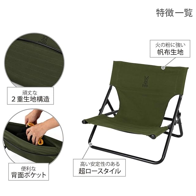 DOD(ディーオーディー) タキビチェア 火の粉に強い帆布生地を使用した焚き火専用キャンプチェア 軽量 C1-597-KH