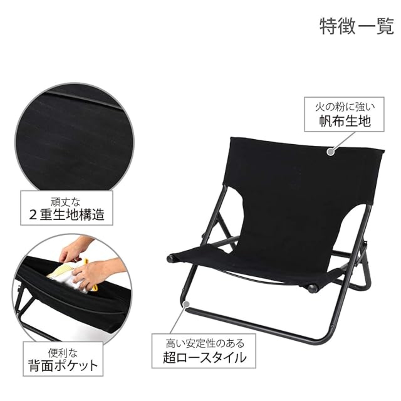 DOD(ディーオーディー) タキビチェア 火の粉に強い帆布生地を使用した焚き火専用キャンプチェア C1-597-BK