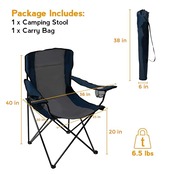 座り心地の良いデザイン : 科学的な構造に基づいて設計されたフルバックのキャンプチェア。2つのドリンクホルダーとクーラーポケットが装備されている。