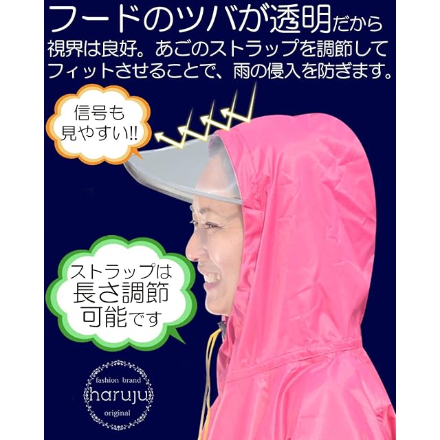 【フードに大きなツバがついている!】①ツバが透明で前方が見やすくなっております。②透明で大きなツバは特に目の周辺に雨があたるのを防ぎ、視界を確保するのに役立ちます。③顔に沿ってひもで絞ることができるので、雨の侵入を防ぎ、フードが脱げる心配がありません。