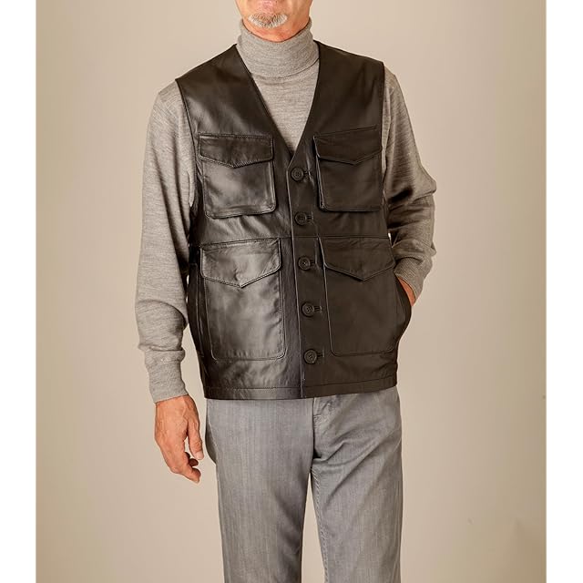 生後6カ月以内の子羊の最高級羊革を贅沢に使用した、着心地抜群の動きやすく暖かいレザーベストです。大容量10ポケット付きベビーラム革ベスト。