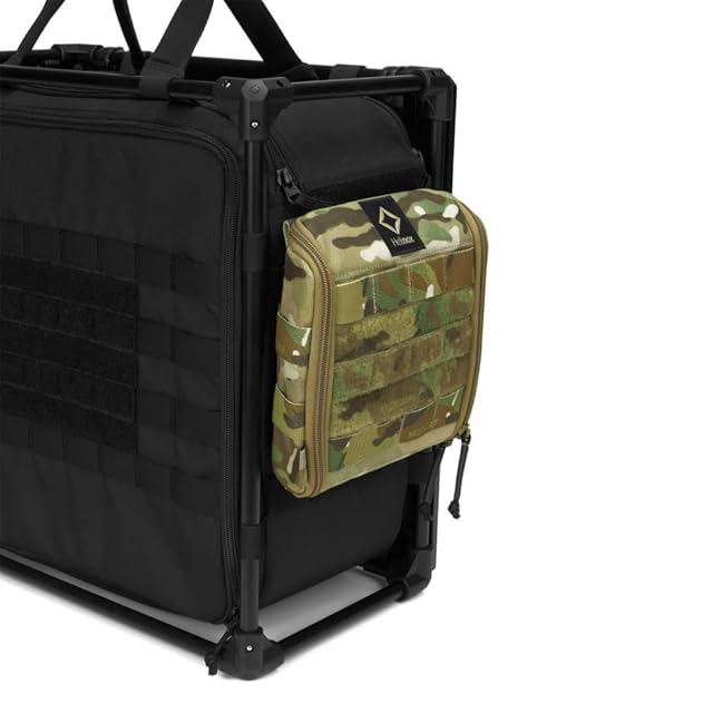 ウェビングを利用しポーチなど付属品を簡単に取り外しできる米軍採用の個人装備システム、モール(MOLLE)システムを備え、タクティカル(用兵)のバックパックとも互換可能です。開口は傾斜約100度開閉でき、小物を入れることができるストレージバッグのスリムバージョンです。