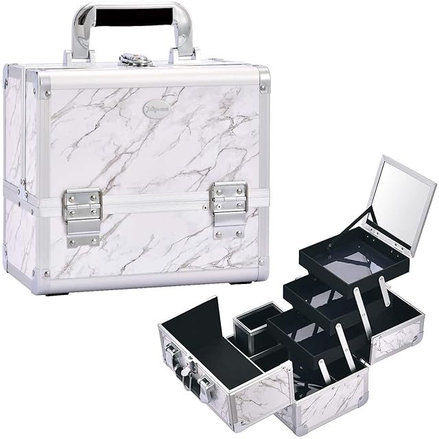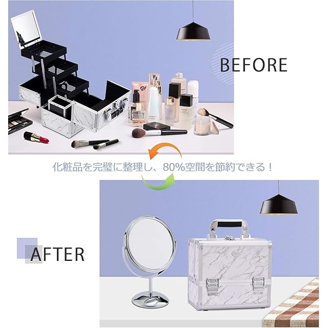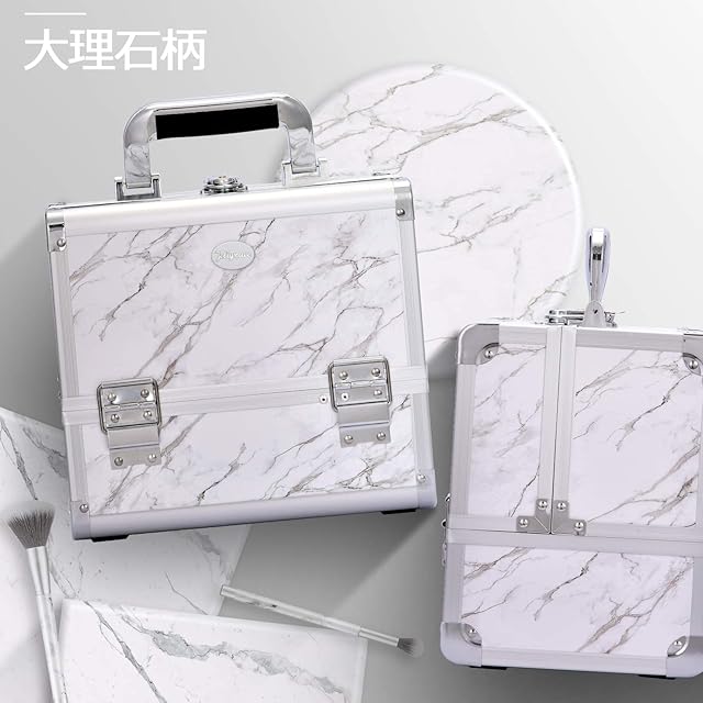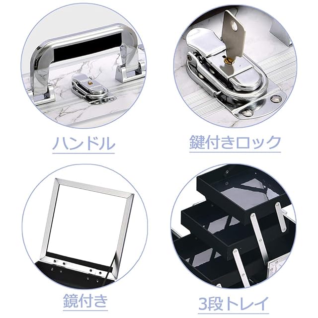 【機能美】おしゃれな大理石柄のメイクボックスは、鏡と鍵付き、ドレッサーより機能性。化粧水・乳液・口紅・ファンデ・アイシャドウ類・メイクブラシ、ネイル用品など、増えていくコスメをきれいに使いやすく収納できます。家庭用はもちろん、旅行と出張時の化粧品収納ボックスとしても快適。