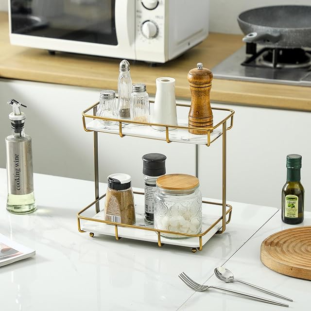 多目的収納棚:このカウンタートップオーガナイザーは、ドレッサー、シンク、キッチンなどの小さなエリアにストレージを追加するのに最適です。 モダンでシンプルなデザインのこの化粧棚は、ご自宅を簡単に整理して整理するのに最適です。