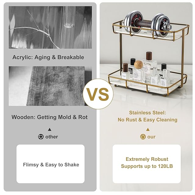 お手入れ簡単:濡れた場所での腐食を防ぐ頑丈なステンレススチールフレームと、豪華な大理石模様の取り外し可能なセラミックトレイを備えたこのドレッサートップスタンドは、機能的でお手入れが簡単です。