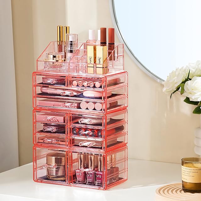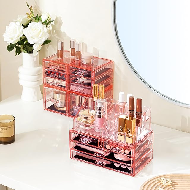 おしゃれにメイクを整理: このHBlifeのアクリル製防塵メイクアップ収納オーガナイザー引き出しは、美容の必需品をきちんと整理するのに最適なソリューションです。 積み重ね可能なデザインと 12 個の広々とした引き出しで、メイクコレクションをスタイリッシュに整理して簡単に収納できます。