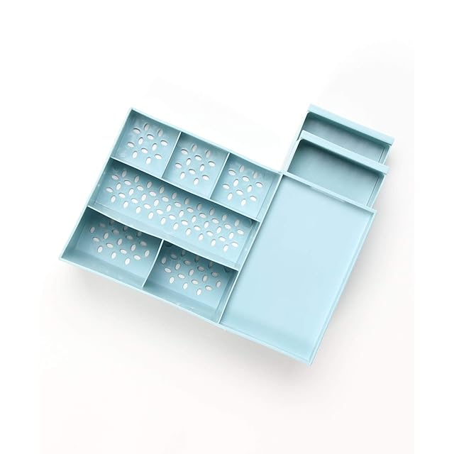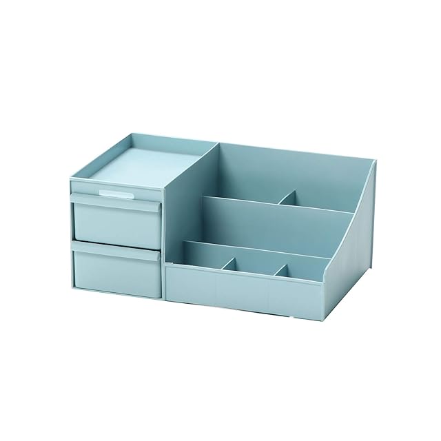 メイクボックス 大容量 コスメボックス 可愛い おしゃれ 卓上 小物入れ 小物収納 引き出し ペン立て 歯ブラシ立て 文房具 化粧品 ボックス メイクケース 収納 スキンケア インテリア 防水 北欧風 (ブルー)