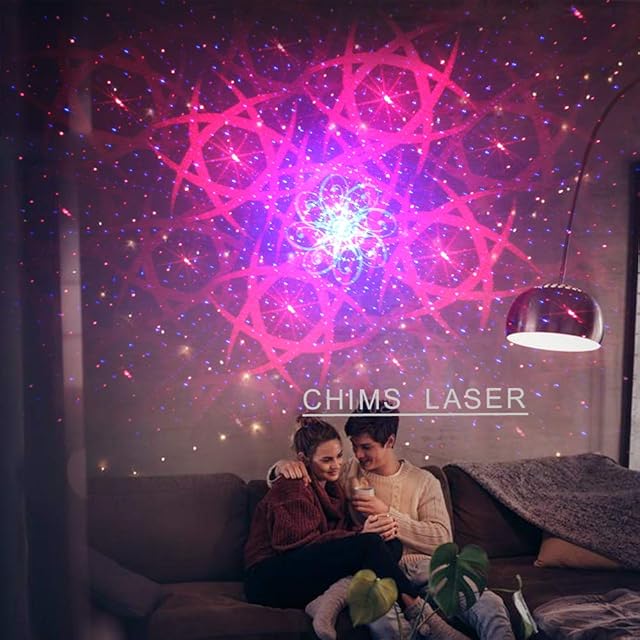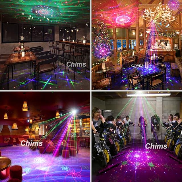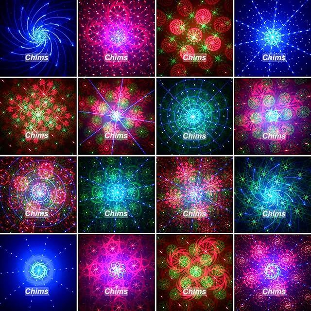 Chims ライト装飾灯プロジェクター RGB 128パターン リモートコントロールLED音声制御装飾照明舞台照明システム 4光源アパーチャーレンズ赤と緑ブルー家族パーティDJクリスマスハロウィン新年Party装飾パーティ照明バーいざかやステージ ディスコ クラブ カラフルロマンチックな雰囲気(レーザー等級:クラス2)