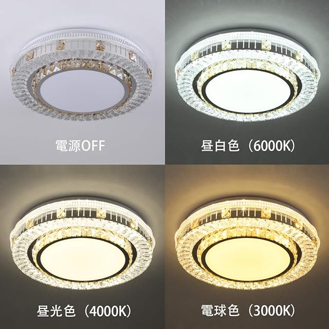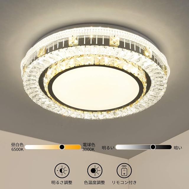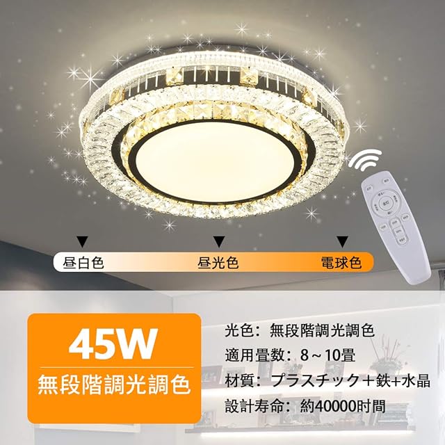 LED シーリングライト 水晶LEDライト 45W 8~10畳 無段階調光調色タイプ 常夜灯 モード メモリ機能 LED 照明器具 電球色 昼光色 3000k-6000k 北欧 和風 和室 欧風 シーリングライト 天井 玄関 門灯 廊下 和室 照明 おしゃれ トイレ 引掛式 天井照明 簡単取付 クリスタル 直径48cm(リモコン付き)