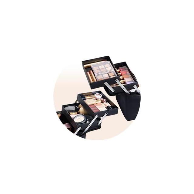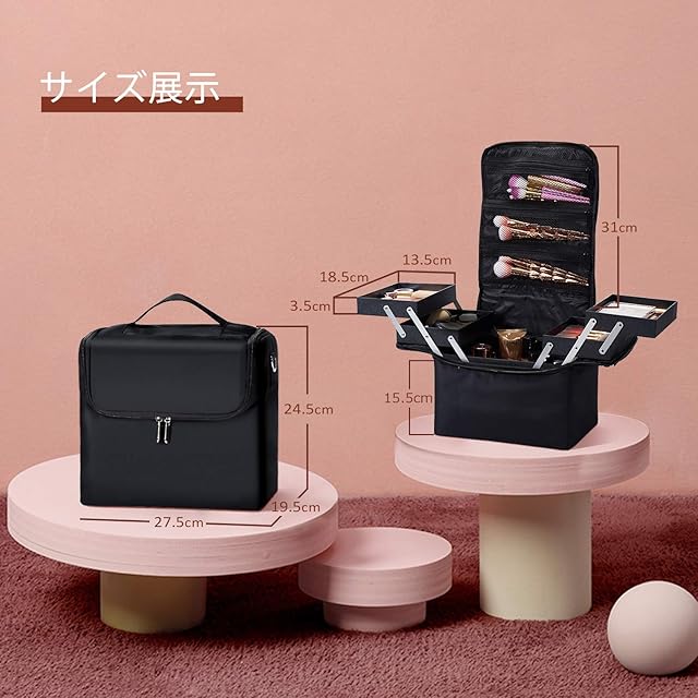 【収納抜群】大容量でボックスの中身が綺麗に収納でき、普段使いのすべて化粧品付属品を完璧に整理と収納できる。内側にはファスナーポケットがありので、チーク、リップグロス、メイクブラシ、口紅、アイブロウ、スティックファンデーション、美容グッズ、ネックレスや指輪などの小物を収納できます。広げるとどこに何があるかが一目瞭然に見えるから忙しい朝の支度でも迷わず時短でお化粧が出来ます。