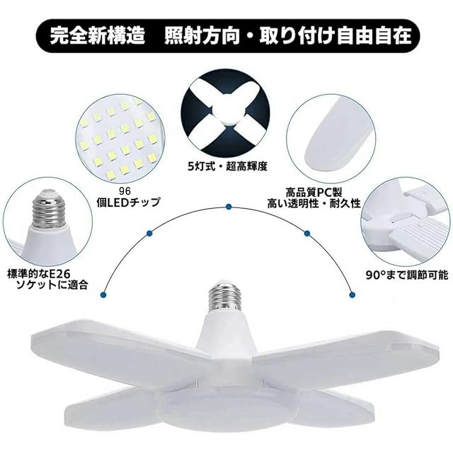 【幅広い用途・取付簡単】E26口金のデザインで直接交換可能なので、ガレージ、地下室、ワークショップ、ユーティリティ、レクリエーションルーム、ストレージルーム、納屋、設備室、広いエリアの照明要件、工業用ワークステーション、ワークスペース、カーポート、自動車店、作業場、一般的な照明の優れた代替品になり、工事不要。