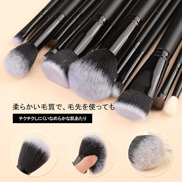 【コスパ最高15本】ベース塗りから、細かい仕上がりまで幅広く対応できるプロのメイクブラシです。ブラシはしっかりしつつもやわらかくて筆の手触りは良いし、毛質が柔らかくて毛抜けにくいです。敏感肌にも使用おすすめです!しかもお手頃価格・お手入れ簡単です。