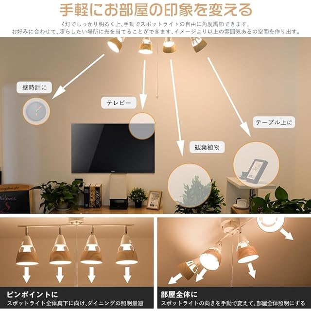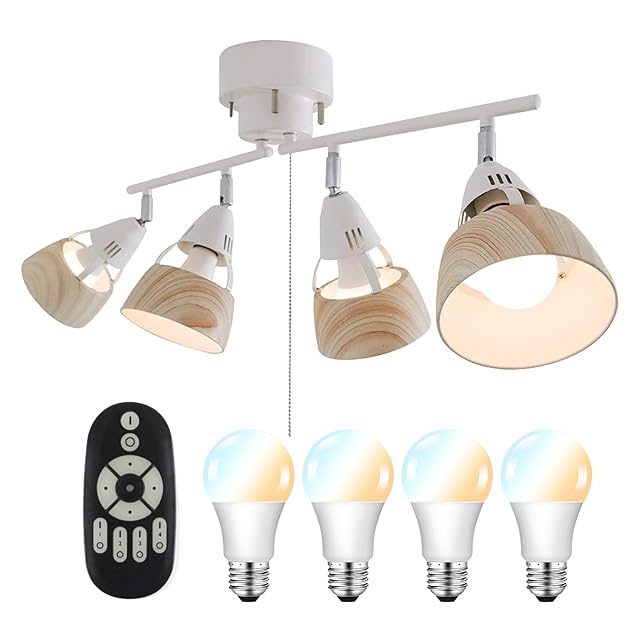 共同照明 シーリングライト 4灯 調光 調色 LED電球80W形付きリモコン操作 ナチュラル GT-DJ-4QW-12WT-2 シーリングスポットライト E26 角度調節可 折り畳み 木目調 北欧 リビング照明 天井照明 おしゃれ 居間用 ダイニング照明 食卓用 | ascend