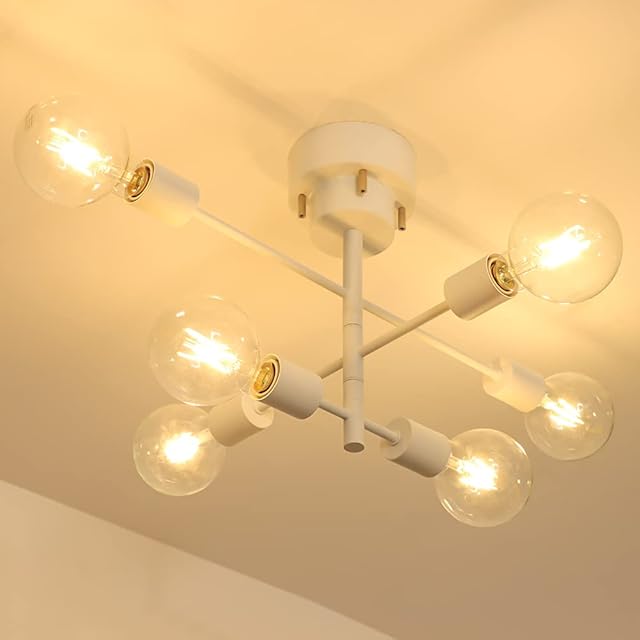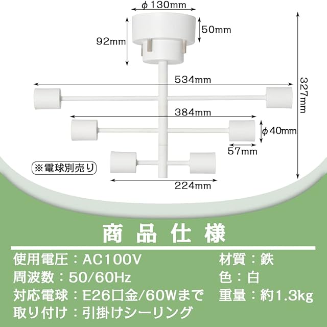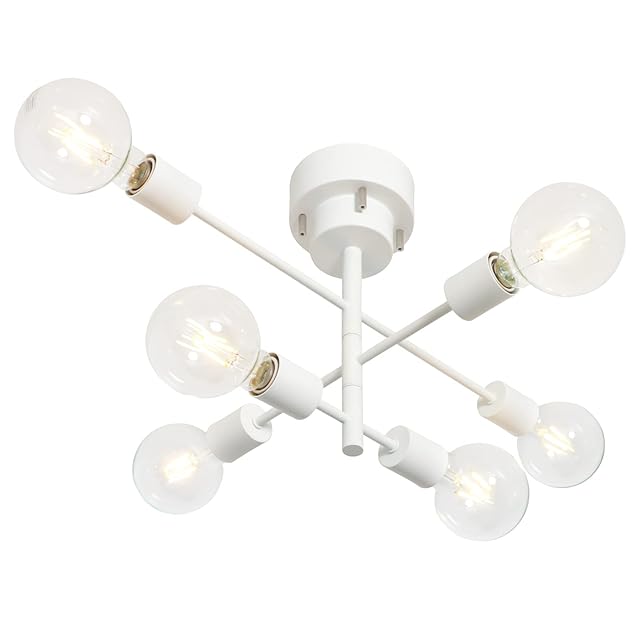 【商品の仕様】商品名:シーリングライト 6灯 シャンデリア サイズ:58.5cm*39.5cm*17cm 材質:鉄 重量:約1.3kg 色:白 対応電球:E26口金/60Wまで ※ご注意:電球別売り