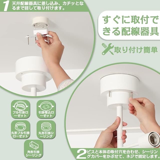 【取り付け簡単】引掛けシーリング式で、電気工事不要で簡単に取り付け可能です。女性一人でも、器械が苦手な人でも取り付けられます。