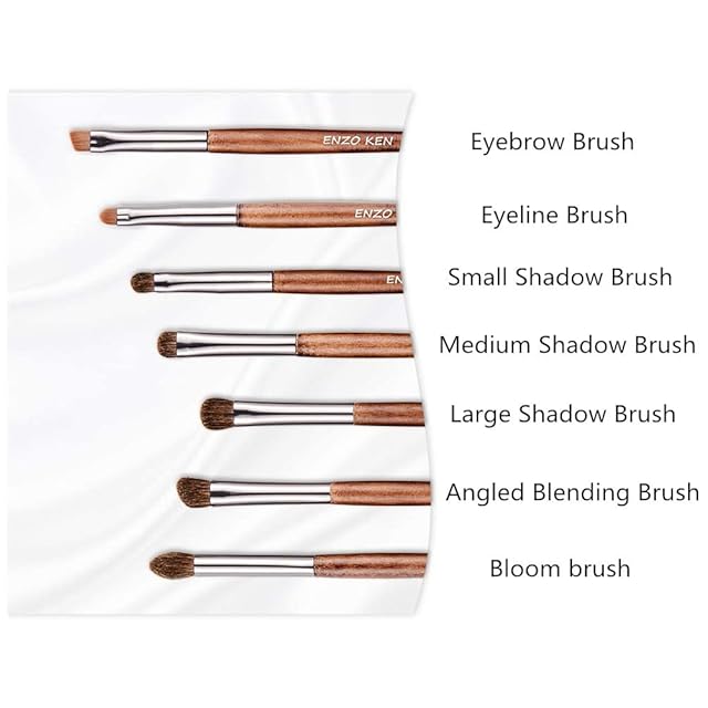 ENZO KEN天然子馬毛の木材アイシャドーブラシセット化粧ポーチ付き、プロ仕様の目元メイクブラシセット、旅行用目下と鼻輪郭ブラシ、アイライナーと眉ブラシ、とても柔らかい本物の毛ブラシ-E100 | ascend