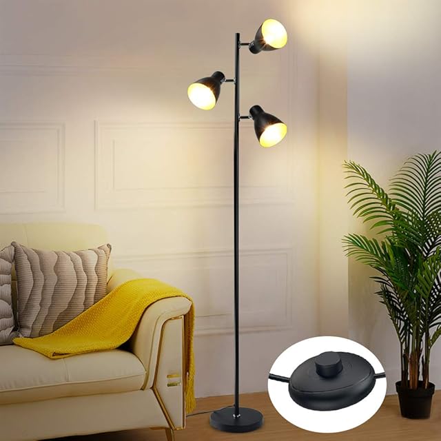 DINGLILED フロアスタンド 3灯 間接照明 ブラック 角度調節 スポットライト おしゃれ 北欧 スタンドライト フロアランプ フロアライト スタンド照明 電気スタンド ルームランプ シンプル モダン インダストリアル E26口金【電球付き】