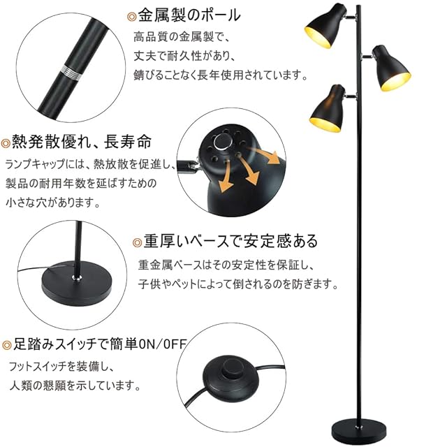 セット内容&保証:商品はフロアスタンド本体、LED電球、取扱説明書を同梱します。弊社の商品は一年の保証が付きます、商品の使い方について、何かご不明のところがある場合、または不良品が出た場合、ぜひ遠慮無く弊店までご連絡ください。問い合わせメールアドレス:[email protected]